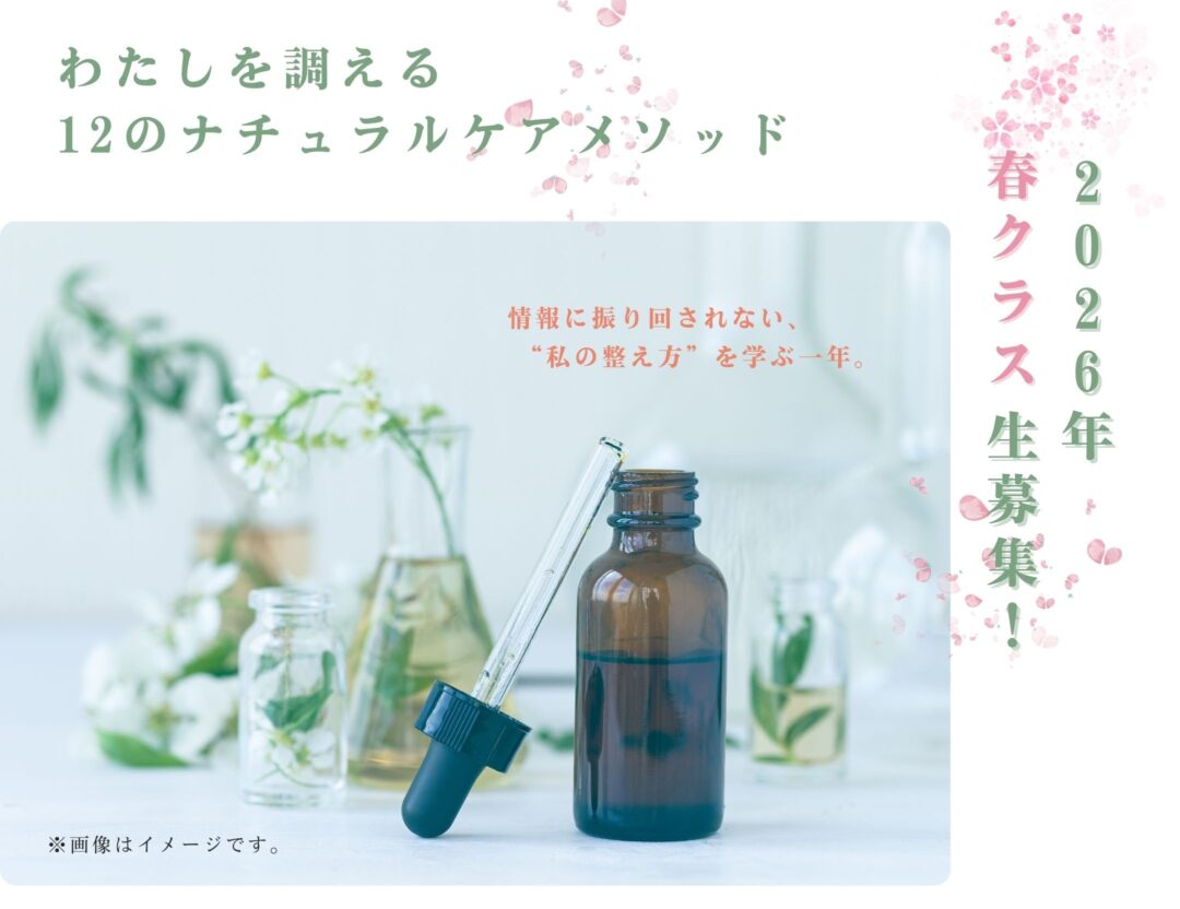 春からスタートする 「わたしを調える 12のナチュラルケアメソッド講座」では アロマテラピーや自然療法の知恵を取り入れながら、毎日の暮らしの中で無理なく続けられる セルフケアの方法をお伝えしていきます。