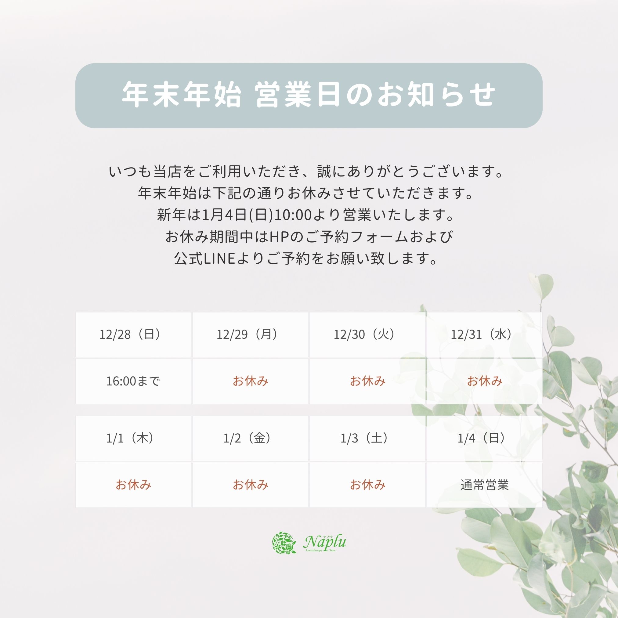 今年一年、頑張った自分を労り、心身ともにリフレッシュさせて新しい年を迎えましょう✨🎍